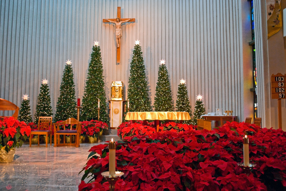 Many churches have a beautiful Christmas tradition of filling their spaces with poinsettias for Christmas services.